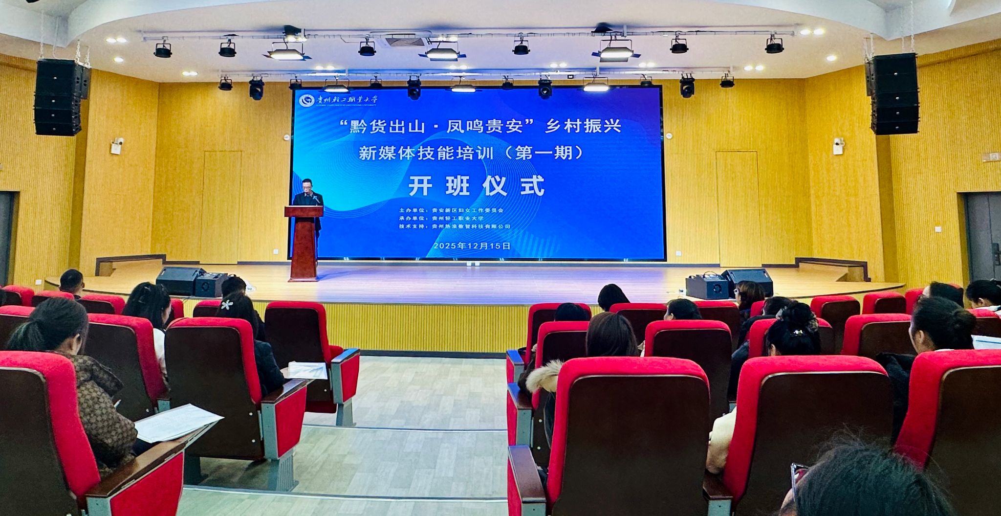 为深入贯彻乡村振兴战略部署,切实提升贵安新区妇女就业创业能力,拓宽地方特色产品宣传推广渠道 免费不收费看污在线观看-免费看污污-免费看污污污视频软件,提升我校服务地方区域发展能力,12月15日上午,由贵安新区妇女工作委员会主办,我校经济管理系承办的“黔货出山・凤鸣贵安”乡村振兴新媒体技能培训(第一期)开班仪式在通达楼学术报告厅隆重举行。