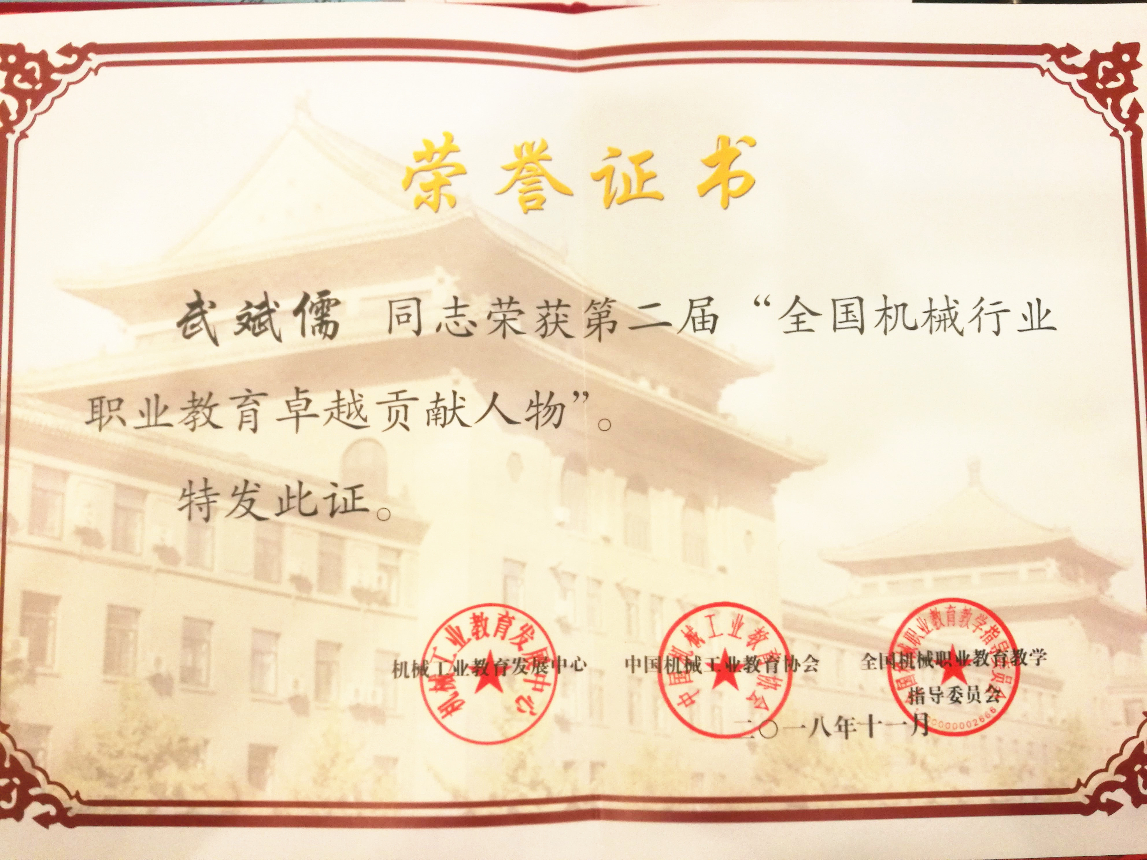 11月23日上午 免费不收费看污在线观看-免费看污污-免费看污污污视频软件,2018年度先进装备制造业产教融合发展论坛暨机械行业指导委员会工作会议在山东青岛召开,党委副书记,院长武斌儒同志应邀参加会议并荣获第二届“全国机械行业职业教育卓越贡献人物”荣誉称号。