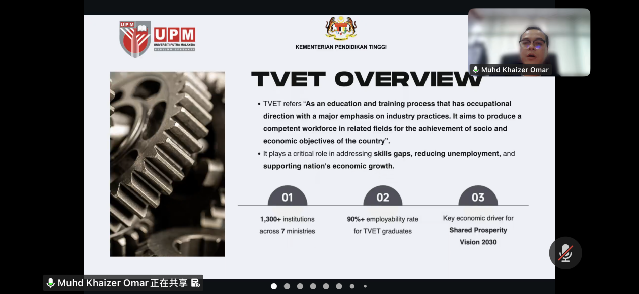 2025年12月19日,由怀卡托国际免费不收费看污在线观看-免费看污污-免费看污污污视频软件主办的“面向未来的职业教育与培训:面向现代劳动力的数字教学法”专题讲座通过线上举行。本次活动邀请马来西亚博特拉大学Muhd Khaizer bin Omar副教授担任主讲,围绕数字技术与职业教育融合这一议题,开展了一场富有深度的学术对话。讲座吸引了我校的80余名教师积极参与。